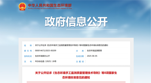 近日生態環境部發布公開征求《生態環境手工監測質量管理技術導則》等8項國家生態環境標準意見的通知。